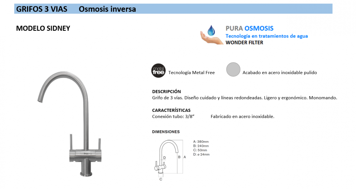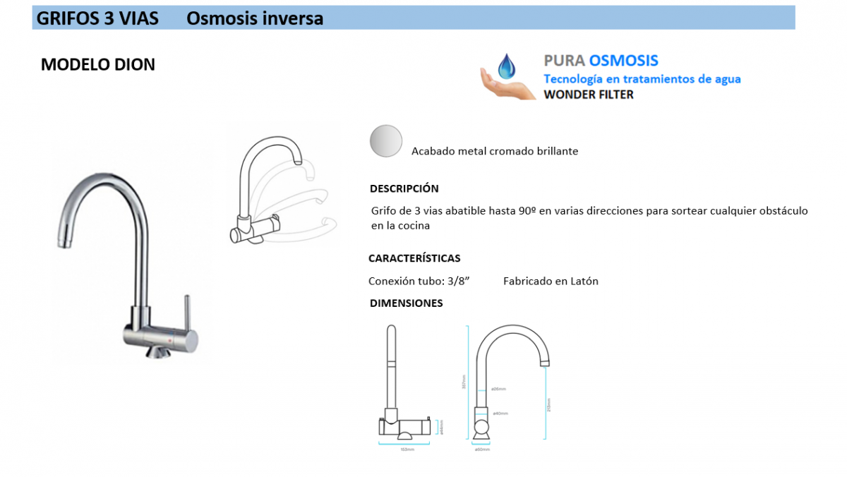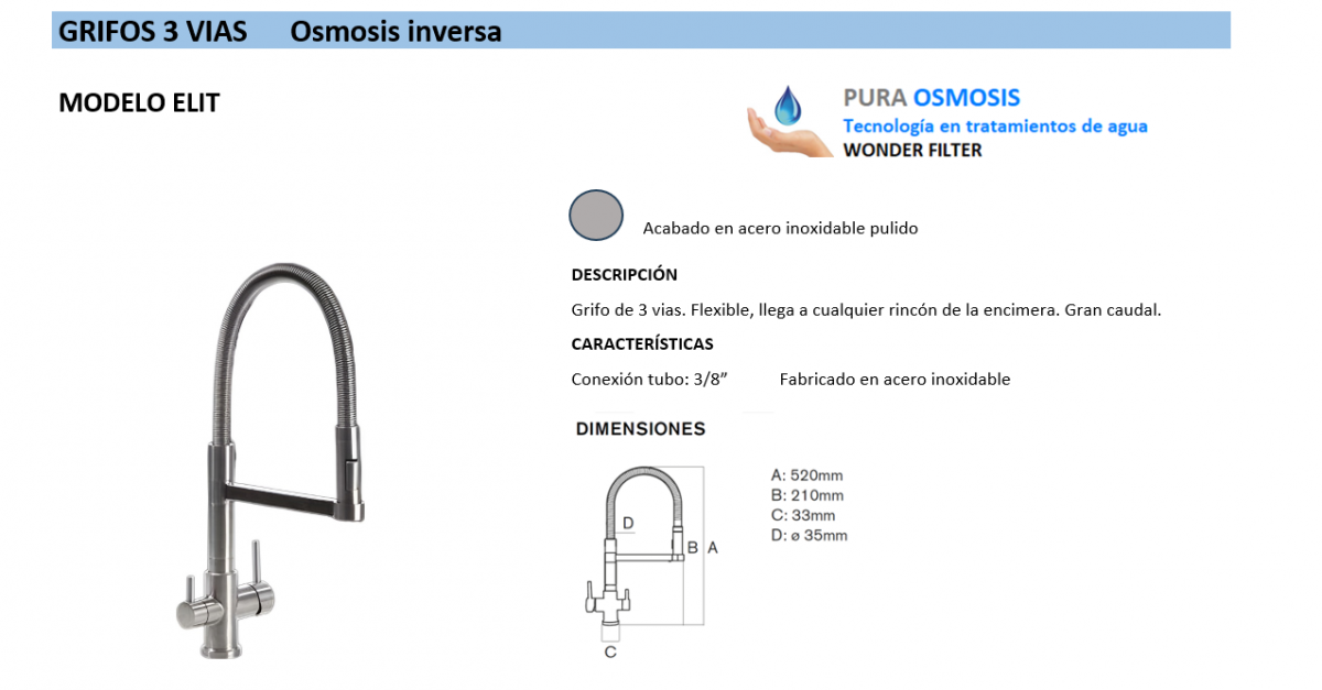 Ideal para conectar al sistema de ósmosis inversa y disfrutar de un agua ideal.